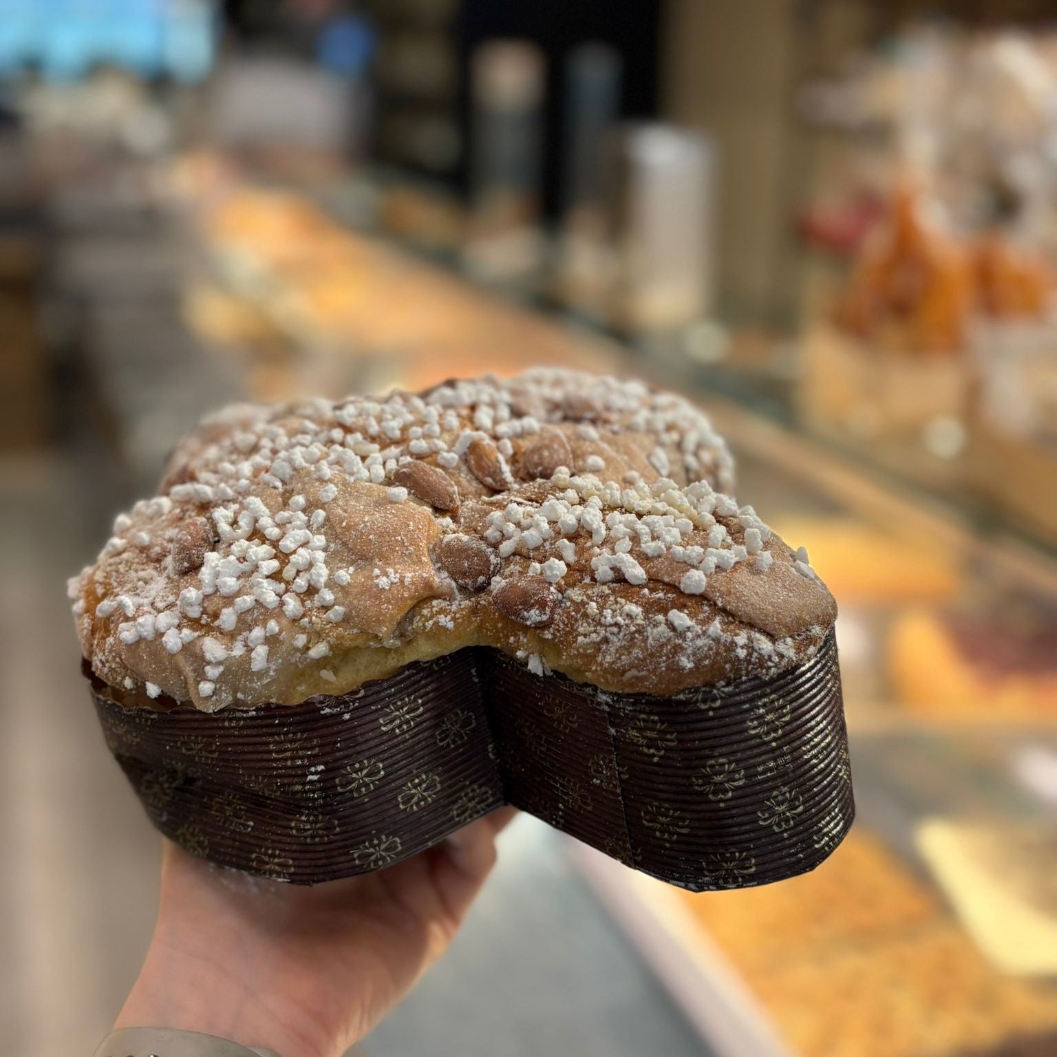 La colomba classica del Forno Giuliani con arancia candita e mandorle. Le nostre colombe sono prodotte a mano, una ad una, con una ricetta artigianale che si tramanda da 2 generazioni all'interno del nostro Forno.